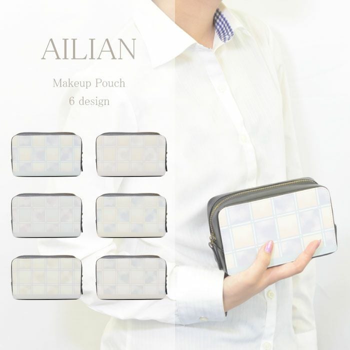 【 AILIAN 】コスメポーチ 化粧品 タイル柄 ナチュラル