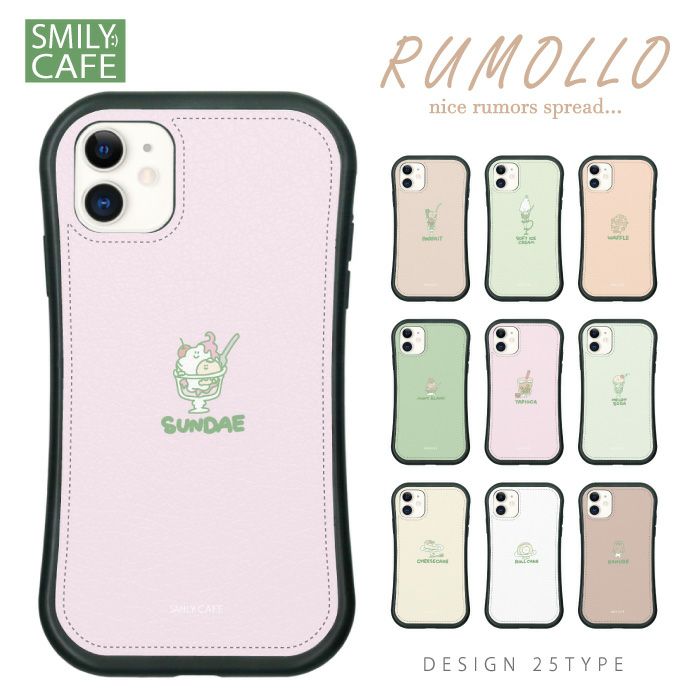 RUMOLLO 耐衝撃TPUレザーケース iPhoneケース SMILYZOO SMILYCAFE スイーツ 食べ物 マカロン マリトッツォ ケーキ かわいい